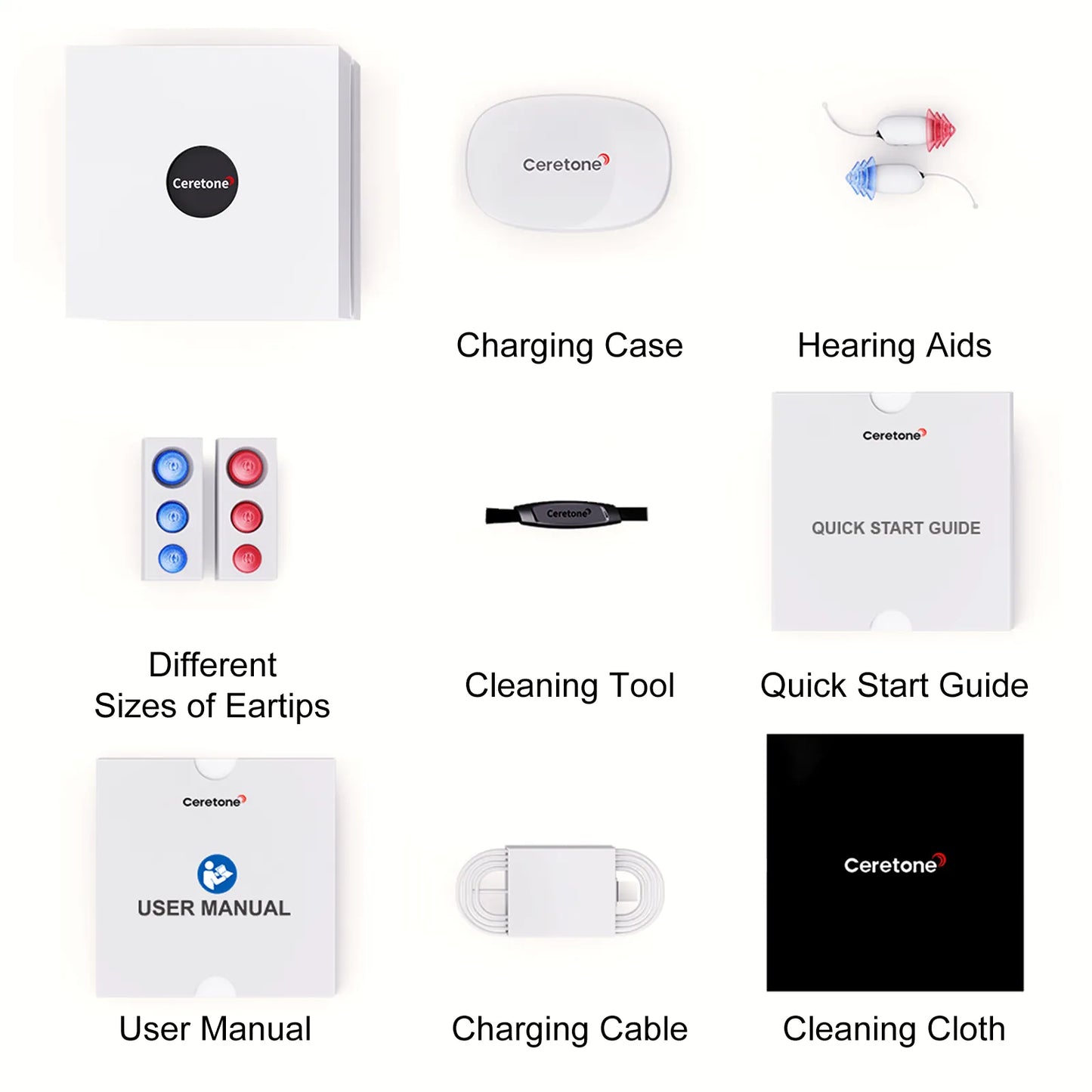 Use the cleaning tools provided by Ceretone or recommended by your audiologist. These tools are designed to safely and effectively clean and maintain your hearing aids.