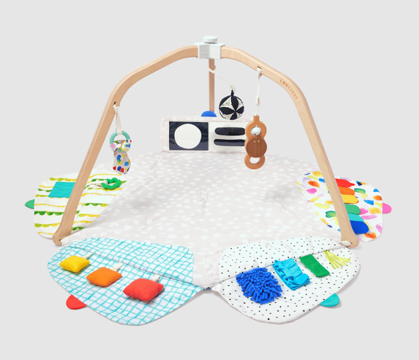 The Lovevery Play Gym is designed exactly for that. From the early newborn days to the active months ahead, this play gym supports every stage. It has five learning zones that spark curiosity, whether it’s high-contrast visuals for newborn eyes, different textures to feel, or flaps to lift and explore. Removable toys help babies learn to grasp, bat, and chew safely. And the best part? The gym even transforms into a cozy fort for older babies, thanks to its reversible cover.